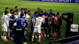 Fue la jugada que pudo cambiar el desarrollo del encuentro de ida entre Boca y Atlético Mineiro. Andrés Rojas esperó varios minutos para anular un gol que, para muchos, fue totalmente válido. Luego de una gran jugada de Chelo Weigandt al medio del área chica, Norberto Briasco le apoyó las manos en la cintura a Nathan Silva, que saltó y enseguida reclamó por foul. Luego, el Pulpo González madrugó al arquero Everson para celebrar el 1-0. Inmediatamente hubo reclamos de los futbolistas brasileños, sobre todo de Nacho Fernández y pasó un buen rato para que el juez se acerque al monitor que está a un costado del campo para ver la jugada. Conmebol dio a conocer el audio de lo ocurrido y tiró más leña al fuego. El video comienza con una locución del organismo, donde aclara contundentemente la primera instancia de la decisión de Andrés Rojas: "El árbitro no observa durante una acción de gol ninguna infracción. El VAR, al revisar la imagen, le sugiere una revisión de campo. El árbitro, al chequear la jugada, interpreta una posible infracción, cambiando su decisión inicial". Pero, curiosamente, cuando confirma que hubo falta expresa que fue del "23" y ese número es de Diego González, quien termina marcando el gol. Sin embargo, durante gran parte de la charla, lo que menos se aprecia es lo que hace el Pulpo y todo el tiempo analizan el supuesto empujón de Briasco. ¿Qué cobró Rojas?