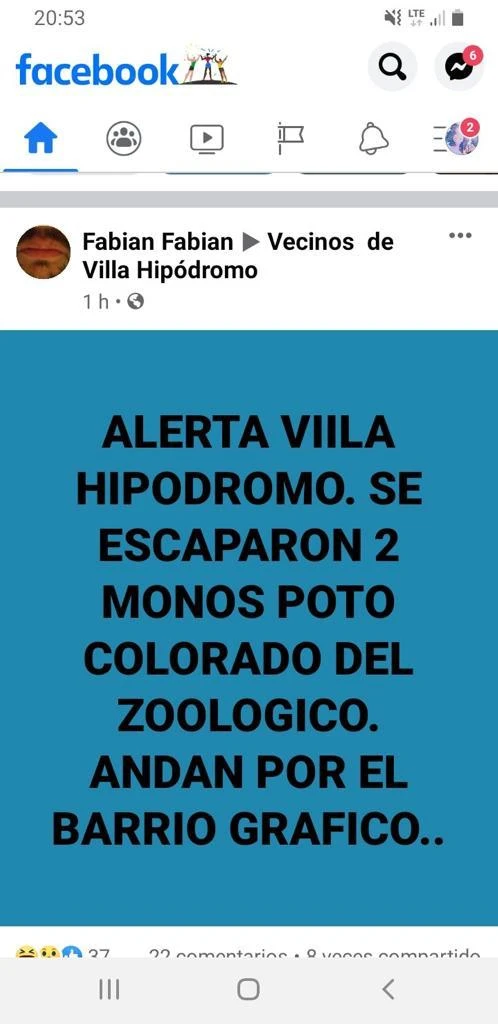 En la tarde de este viernes, vecinos del barrio Ledone, en el oeste del departamento de Godoy Cruz, vivieron un momento insólito cuando apareció por los techos de sus casas un mono que se había escapado del Ecoparque. El animal también fue visto en otros barrios como el Gráfico.  Varios vecinos vieron al animal y dieron aviso por los grupos de WhatsApp del barrio y de Facebook. Algunos testigos dijeron que eran dos monos, pero al final de la tarde solo capturaron a uno.   Los vecinos llamaron al 911 para dar aviso de la situación. A los minutos llegó personal policial para tratar de atrapar al animal. En un momento, uno de los monos se metió en el patio de una casa. Hasta allí tuvieron que ir personal de la policía con empleados de Parques y Zoológicos. Luego de varios intentos pudieron atrapar al animal a pesar de su destreza y rapidez. Hace unos meses, una situación similar se vivió en Godoy Cruz, pero el desenlace fue tráfico. En esa ocasión también había aparecido un mono que iba colgado de los cables de la luz. Mientras lo filmaban, el animal tocó un cable de alta tensión y murió electrocutado.