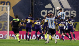 Boca y Argentinos igualaron 1-1 bajo una lluvia torrencial que terminó siendo protagonista. Porque el agua en cantidad que cayó sobre la Bombonera a la hora de este partido correspondiente a la quinta fecha de la LPF terminó anegando el terreno de juego y propiciando que el chato empate fuera el resultado más ajustado al juego que ambos intentaron desarrollar pero nunca pudieron. La lluvia y los consecuentes charcos que provocaron su intensidad fueron elementos condicionantes en el juego, sobre todo para Argentinos, que de la mano de Gabriel Milito tiene tendencia a jugar por abajo. Claro que para Boca también resultó perjudicial porque la mayor lentitud de sus hombres sobre una superficie rápida en algunos sectores con menos agua y lenta en la agotada por los charcos, le terminó jugando en contra. Boca y Argentinos jugaron en La Bombonera en un diluvio (Foto: Maximiliano Luna). Y aunque Miguel Russo apostó por un poco más de fútbol con la dupla Edwin Cardona-Aaron Molinas, solamente este último hizo pie ante el equipo de un Argentinos que este domingo volvió a vestirse con los colores similares a los del seleccionado argentino. Y en ese devenir del encuentro la visita encontró la ventaja antes de los 20 minutos mediante un tiro libre que pidió y ejecutó muy bien Gabriel Carabajal, cuyo disparó dio en la parte inferior del travesaño, picó sobre la línea y del rebote Matías Romero conectó de cabeza a la red ante la repetida y ya exasperante blandura en la marca de Frank Fabra. Desde allí hasta el final de la primera etapa Argentinos siempre apareció mejor parado en la cancha empapada y al término de esos 45 minutos iniciales justificó la ventaja parcial. Cardona, una buena y una mala: metió el centro del gol pero también fue expulsado (Foto: Maximiliano Luna). Pero Boca, con más vergüenza que fútbol salió a apretarlo a Argentinos, aunque con serias dificultades para crear situaciones claras de gol, aunque el tembladeral en que se había convertido el área defendida por el arquero Lucas Chaves podía hacer presagiar lo peor para el conjunto de La Paternal. Sin embargo la igualdad llegó a partir de una pelota parada tras una innecesaria falta cometida fuera de ese área, de izquierda a derecha, hacia donde Cardona lanzó el balón haciendo gala de su excelsa pegada que rozó la cabeza de Miguel Torrén para desviar levemente la trayectoria del balón y descolocar a Chaves. Claro que Cardona también viene equilibrando la balanza del lado positivo al negativo permanentemente en los últimos tiempos, y así fue que apenas cinco minutos después de ese gol fue muy fuerte abajo sobre el ingresado Florentín, aprovechando el deslizamiento largo que le permitía el agua acumulada, y se ganó la segunda tarjeta amarilla y la consecuente roja, luego de la primera justo de los 30 del primer tiempo por protestar. El partido se jugó bajo una lluvia torrencial (Foto: Maximiliano Luna). Por eso el cuarto de hora final fue de padecimiento para Boca, ya que Argentinos fue "a la carga Barracas", poniendo inclusive Milito al "grandote" Carlos Quintana para ir a buscar de arriba una victoria que parecía cercana. Y si ese triunfo no llegó fue, en principio, por la mala puntería de algunos jugadores de Argentinos, como por ejemplo el propio Quintana, que no estuvo ajustado en una posibilidad aérea muy propicia. Un punto para cada uno (Foto: Maximiliano Luna). Así, se llegó a un final que dejó disconformes a ambos, ya que Boca no pudo aprovechar el envión de haber eliminado por penales a River en octavos de final de la Copa Argentina entresemana y Argentinos, jugando el último cuarto de hora con un hombre más, tuvo la victoria "a tiro". Boca llegó entonces a su cuarto empate en el torneo a los que suma una derrota, aunque la estadística indica que de los últimos 15 encuentros disputados solamente ganó uno en los 90 minutos regulares, a The Strongest, de Bolivia, allá lejos y hace tiempo, por la fase de grupos de la Copa Libertadores. Ahora los "xeneizes", que siguen sin mostrar una identidad futbolística desde que los dirige Russo, visitarán el próximo domingo a Estudiantes, en La Plata, por la sexta fecha de la LPF; mientras que Argentinos recibirá el sábado a Banfield en La Paternal.   Síntesis Boca: Agustín Rossi; Marcelo Weigandt, Lisandro López, Carlos Izquierdoz y Frank Fabra; Cristian Medina, Jorman Campuzano, Aaron Molinas y Edwin Cardona; Cristian Pavón y Luis Vázquez. DT: Miguel Ángel Russo. Argentinos: Lucas Chaves; Kevin MacAllister, Miguel Torrén, Lucas Villalba y Elías Gómez; Matías Romero, Franco Moyano, Enzo Kalinski y Gabriel Carabajal; Gabriel Hauche y Gabriel Ávalos. DT: Gabriel Milito. Gol en el primer tiempo: 18m. Romero (A). Gol en el segundo tiempo: 24m. Torrén (A), en contra. Cambios en el segundo tiempo: 4m. Nicolás Reniero por Ávalos (A), 18m. Norberto Briasco por Vázquez (B) y Juan Ramírez por Medina (B); 21m. Gabriel Florentín por Carabajal (A) y Carlos Quintana por Villalba (A); 28m. Lautaro Ovando por Hauche (A) y Javier Cabrera por Romero y 40m. Luis Advíncula por Weigandt (B). Amonestados: Izquierdoz y Campuzano (B). Villalba, Hauche. Romero y Florentín (A). Incidencia en el segundo tiempo: 30m. expulsado Cardona (B), por doble amarilla.   Fuente: Telam