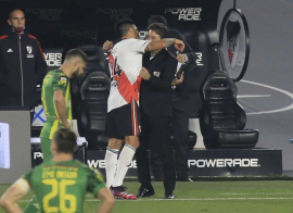River venció por 2 a 0 a Aldosivi de Mar del Plata en el estadio "Monumental" y se acercó a la cima de la Liga Profesional, en un partido correspondiente a la octava fecha del torneo. El "Millonario", que dominó ampliamente el juego desde el inicio, se puso en ventaja a los 13 minutos del primer tiempo con un bombazo de Julián Álvarez que venció la resistencia del arquero José Devecchi. Más tarde, luego de una serie de situaciones claras que River no supo aprovechar para estirar la diferencia, Fabricio Coloccini fue expulsado al evitar un gol con la mano sobre la línea del arco y Álvarez, desde los doce pasos, intentó picar la pelota pero Devecchi adivinó la intención del delantero y contuvo el débil remate. Ya en el complemento, el conjunto de Núñez liquidó el cotejo con un tanto del mediocampista Enzo Pérez a los 15 minutos para sellar la victoria y quedar a dos puntos de los líderes del certamen. Los dirigidos por Marcelo Gallardo arrasaron en la primera parte, donde se pusieron en ventaja y tuvieron una gran cantidad de aproximaciones para aumentar la diferencia, pero Devecchi dejó con vida a su equipo, incluso luego del penal que sancionó Fernando Rapallini por la mano de Coloccini. Con diez durante más de 60 minutos, el partido se le hizo aún más cuesta arriba al elenco marplatense, que no halló respuestas para ir por el empate y sólo evitó llevarse una goleada del "Monumental". Con este resultado, River suma 14 puntos y quedó a dos de los líderes Estudiantes de La Plata, Talleres de Córdoba y Lanús, mientras que Aldosivi permanece con 13 unidades, a tres de la cima, en la octava posición. En la próxima fecha, el "Millonario" visitará a Sarmiento de Junín el lunes a las 19:00 y el "Tiburón" recibirá al "Granate" el domingo a las 15:45. Síntesis del partido. Liga Profesional. Fecha 8. River – Aldosivi. Estadio: Antonio Vespucio Liberti (River). Árbitro: Fernando Rapallini. River: Franco Armani; Alex Vigo, Paulo Díaz, David Martínez, Robert Rojas, Milton Casco; Enzo Pérez, Bruno Zuculini; Julián Álvarez, Matías Suárez y Braian Romero. DT: Marcelo Gallardo. Aldosivi: José Devecchi; Emanuel Iñiguez, Fabricio Coloccini, Emiliano Insúa, Emanuel Insúa; Federico Gino, Gastón Gil Romero, Gastón Lodico; Malcom Braida, Martín Cauteruccio y Federico Andrada. DT: Fernando Gago. Goles en el primer tiempo: 14m. Julián Álvarez (R). Goles en el segundo tiempo: 15m. Enzo Pérez (R). Cambios en el segundo tiempo: 10m. Mario López por Federico Gino (A) y Leandro Maciel por Gastón Lodico (A); 15m. Tomás Galván por Braian Romero (R); 18m. Pablo Becker por Federico Andrada (A) y Lautaro Guzmán por Martín Cauterucció (A); 28m. Agustín Palavecino por Bruno Zuculini (R) y Enzo Fernández por Enzo Pérez (R); 29m. Joaquín Indacoechea por Gastón Gil Romero (A); 35m. Federico Girotti por Matías Suárez (R) y Agustín Fontana por Julián Álvarez (R). Incidencias en el primer tiempo: 30m. Fabricio Coloccini fue expulsado (A); 31m. José Devecchi (A) le atajó un penal a Julián Álvarez (R).
